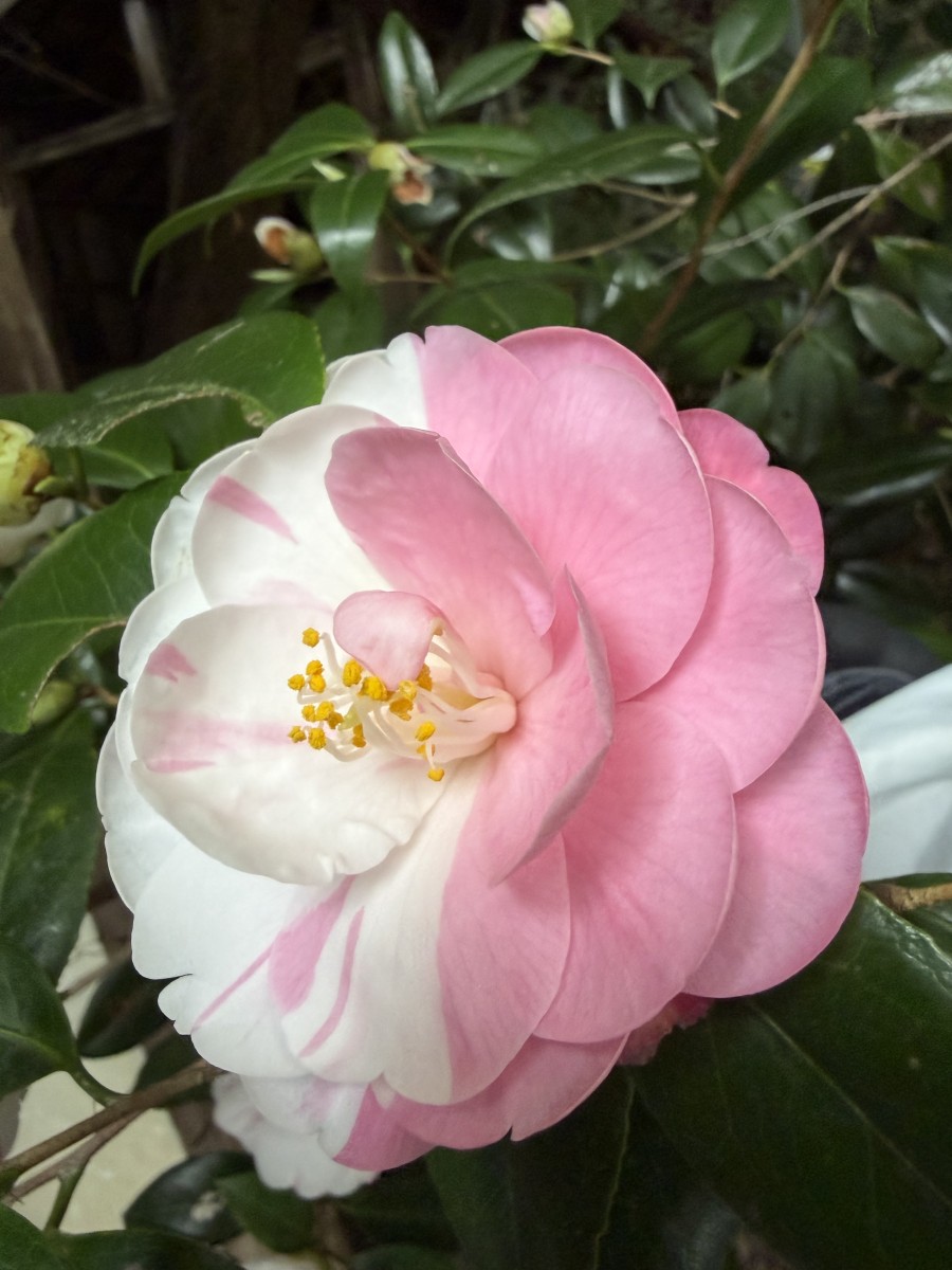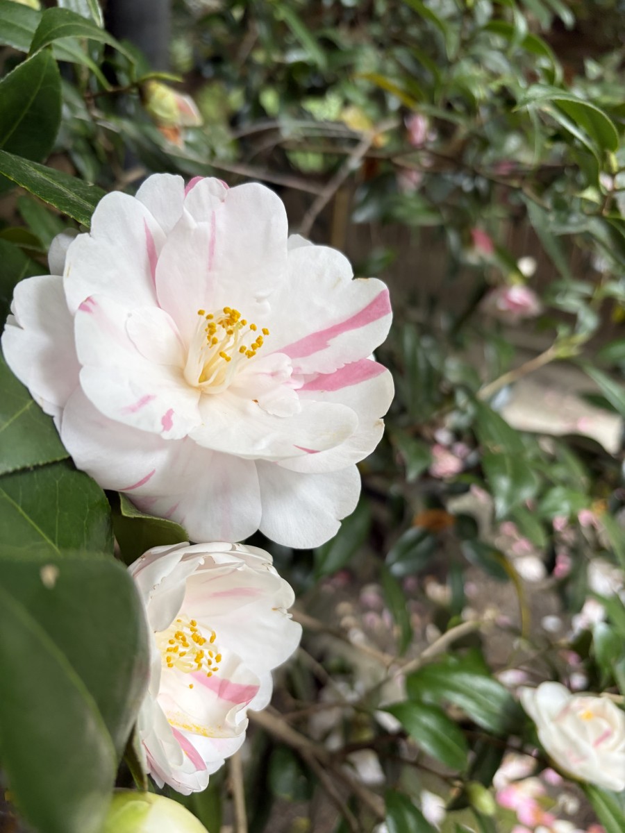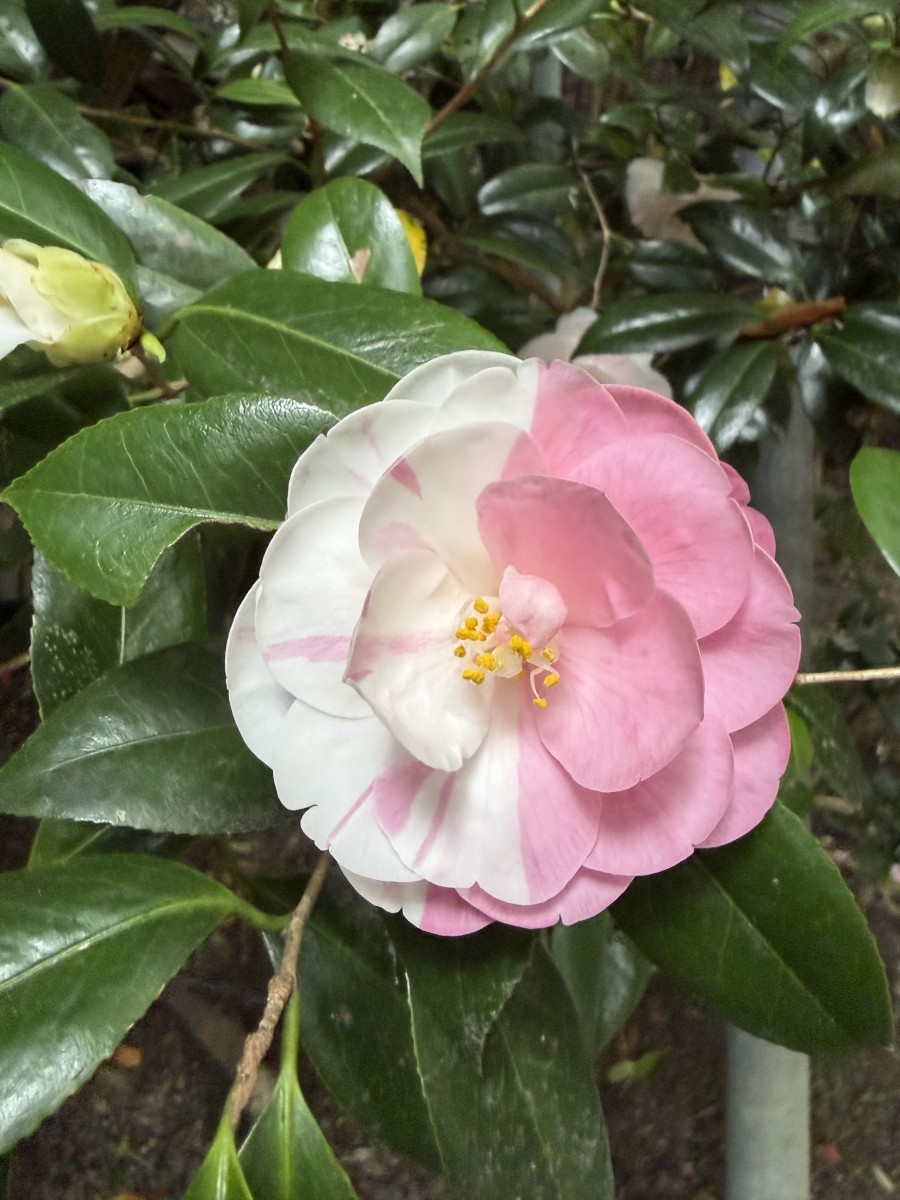 五色八重散椿に今年も奇跡のハーフ&ハーフ椿が!去年に続き奇麗なハーフ椿が咲きました!